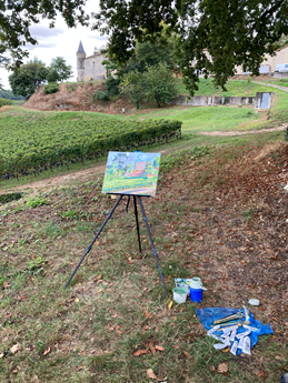 September took me to St. Emilion (France) and the surrounding countryside. The weather was mixed so I didn’t get much done: torrential rain, broken skies and some brilliant sunshine. The grapes were a week from being picked so the vines were laden and had taken on autumn colours. It was very different to Rioja and inspiring in a different way.